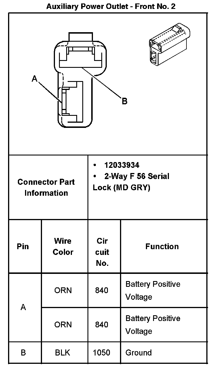 Auxiliary Power Outlet - Front No. 2: