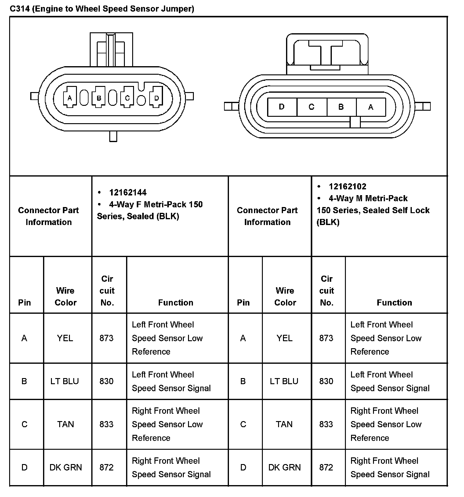 C314 (Engine to Wheel Speed Sensor Jumper)