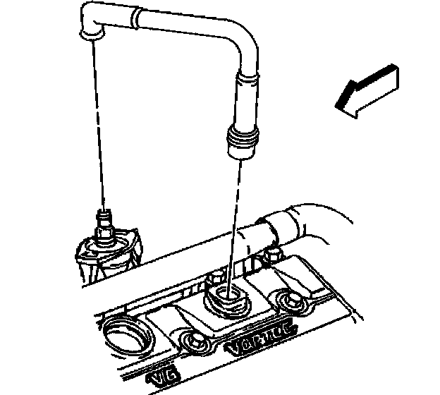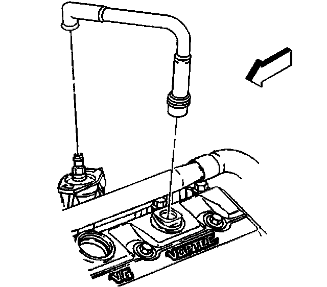 2. Install the PCV valve hose assembly to the intake manifold and in the valve rocker arm cover.