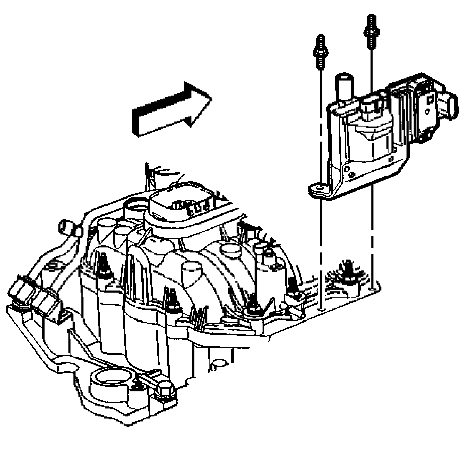 43. If reusing the fasteners, apply threadlock GM P/N 12345382 (Canadian P/N 10953489) or equivalent, to the threads of the throttle body attaching studs.