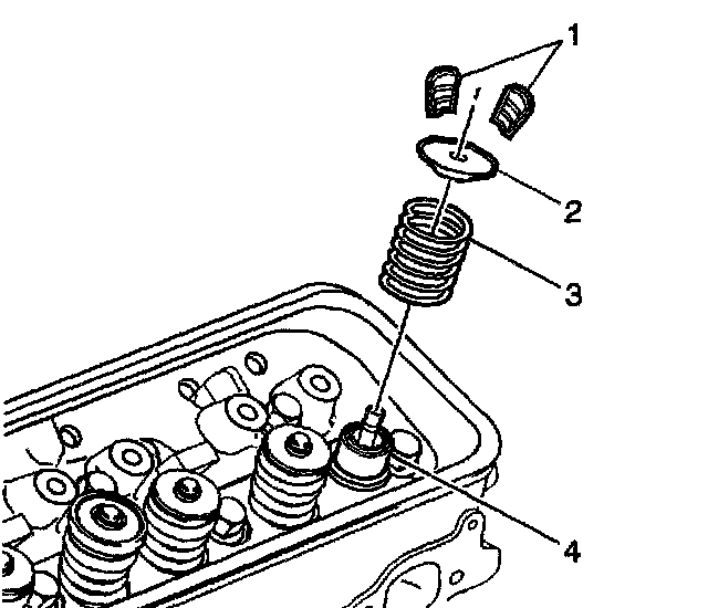 4. Remove the valve spring cap (2).