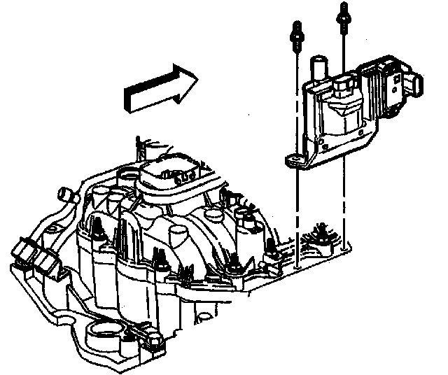 11. If reusing the fasteners, apply threadlock GM P/N 12345382 (Canadian P/N 10953489) or equivalent, to the threads of the evaporative emission (EVAP) canister purge solenoid valve studs.