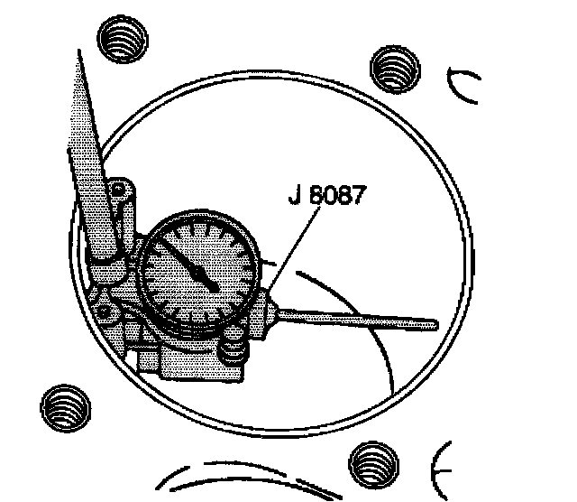 1. Use the J 8087 in order to measure the cylinder bore diameter. Measure at a point 64 mm (2.5 inch) from the top of the cylinder bore and 90 degrees to the crankshaft centerline.