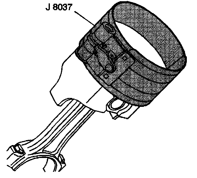 3. Install the J 8037 onto the piston and compress the piston rings.