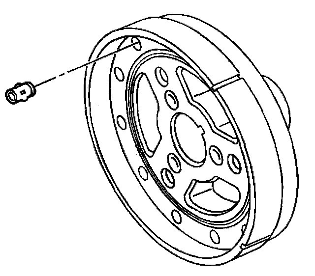 2. Apply a small amount of adhesive GM P/N 12346141 (Canadian P/N 10953433) or equivalent, onto the crankshaft balancer keyway in order to seal the crankshaft balancer keyway and crankshaft joint.
