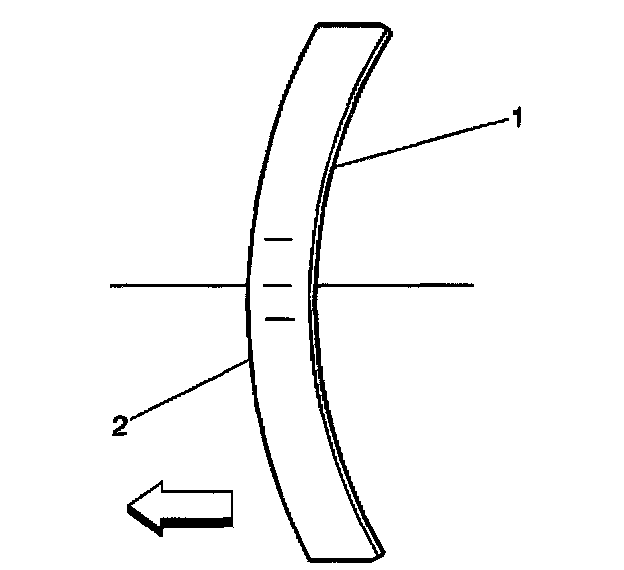 8. Ensure that the crown of the crankshaft balancer washer (2) is faced away from the engine.