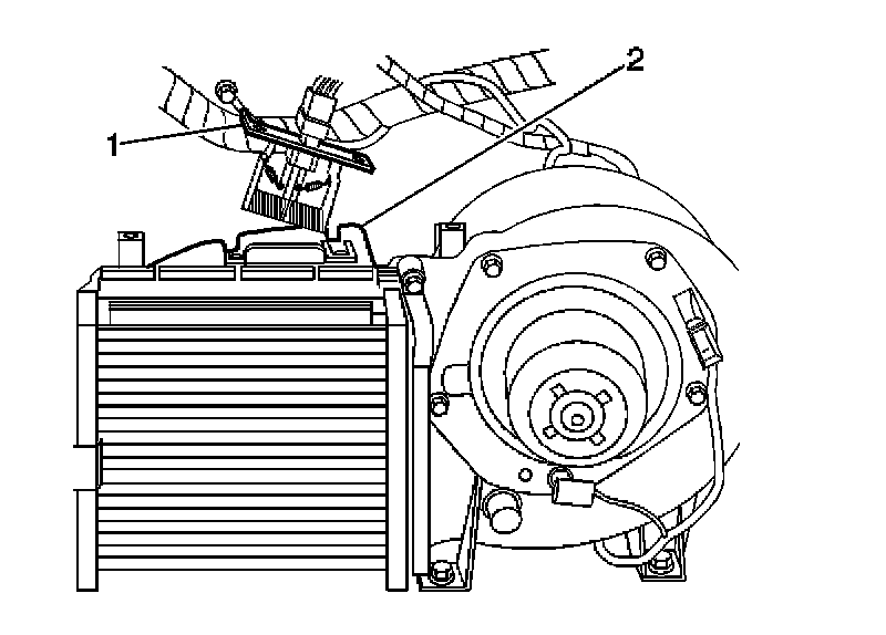 4. Remove the auxiliary heater blower motor resistor assembly (1) from the heater case.