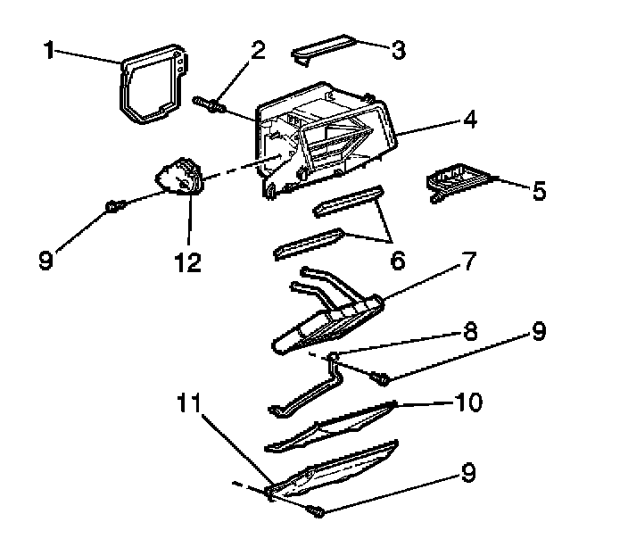 8. Remove the heater core (7) from the vehicle.