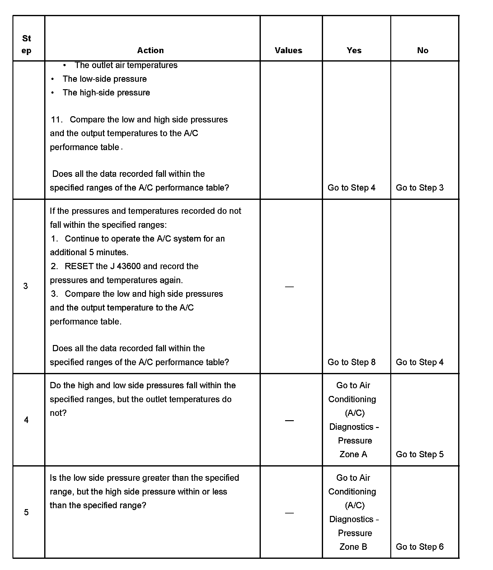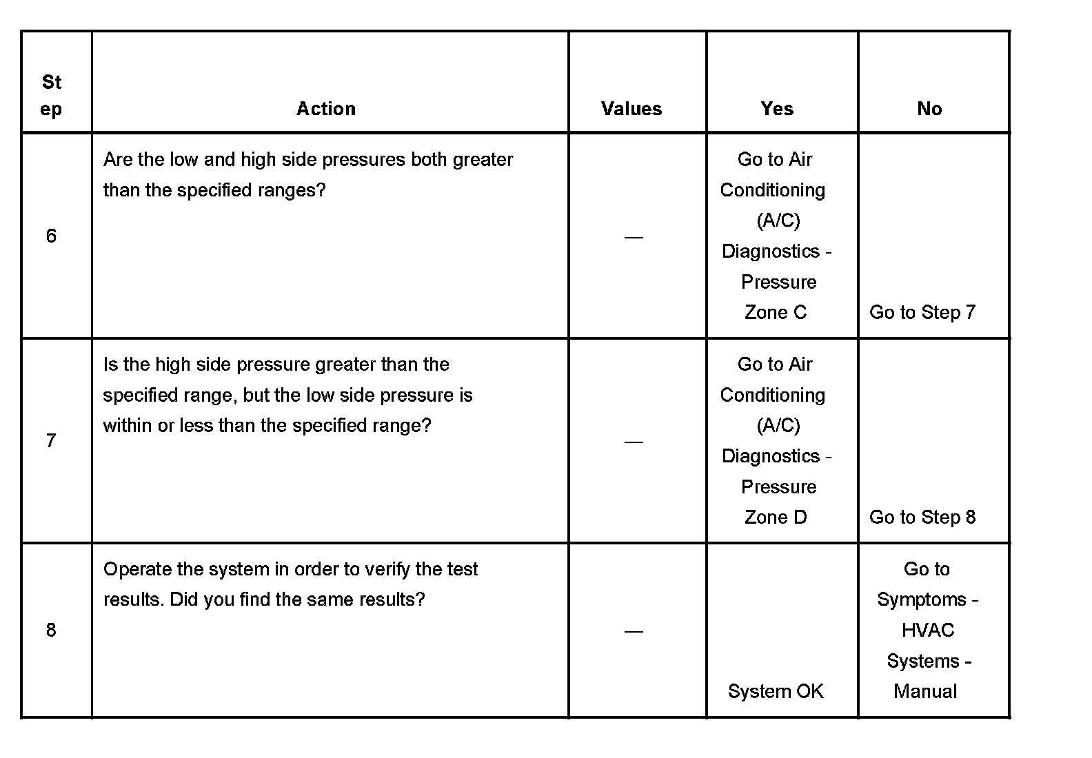 1. This step determines if the A/C system has at least the minimum refrigerant charge required to operate the system without damage.