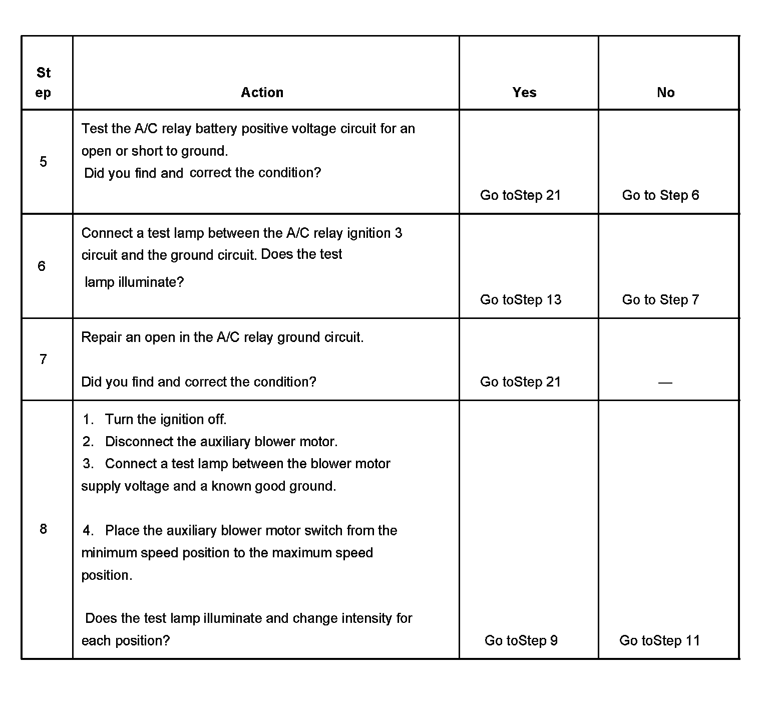 6. This step tests for a possible open in the A/C relay ground circuit.