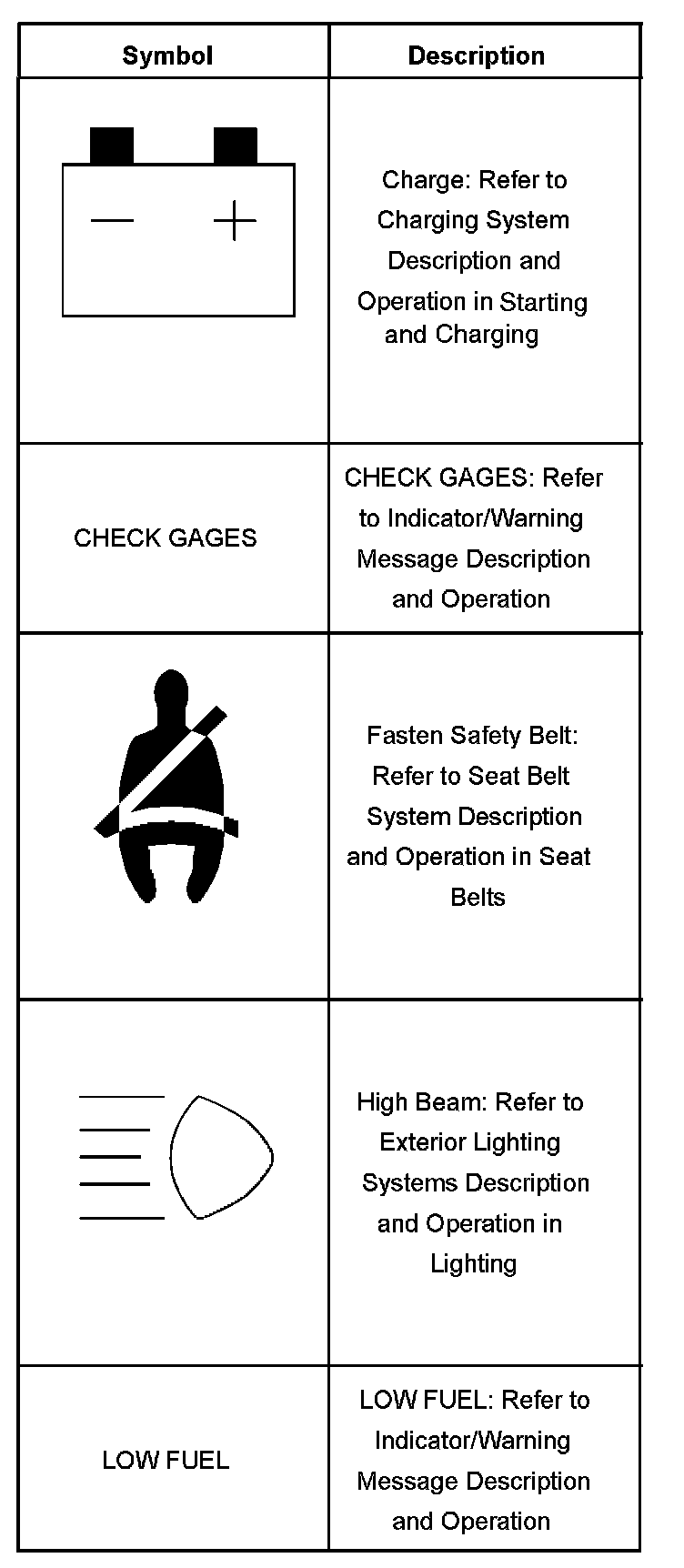 The IPC illuminates the low fuel indicator when the IPC detects that the fuel level is less than 17 percent. The IPC receives a class 2 message indicating fuel level percent from the PCM.