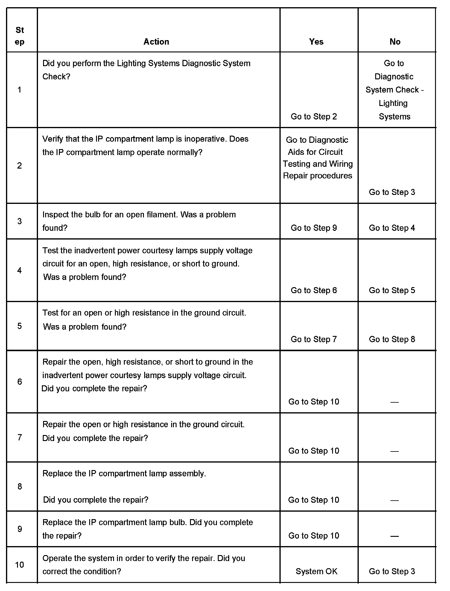 Instrument Panel (I/P) Compartment Lamp Inoperative