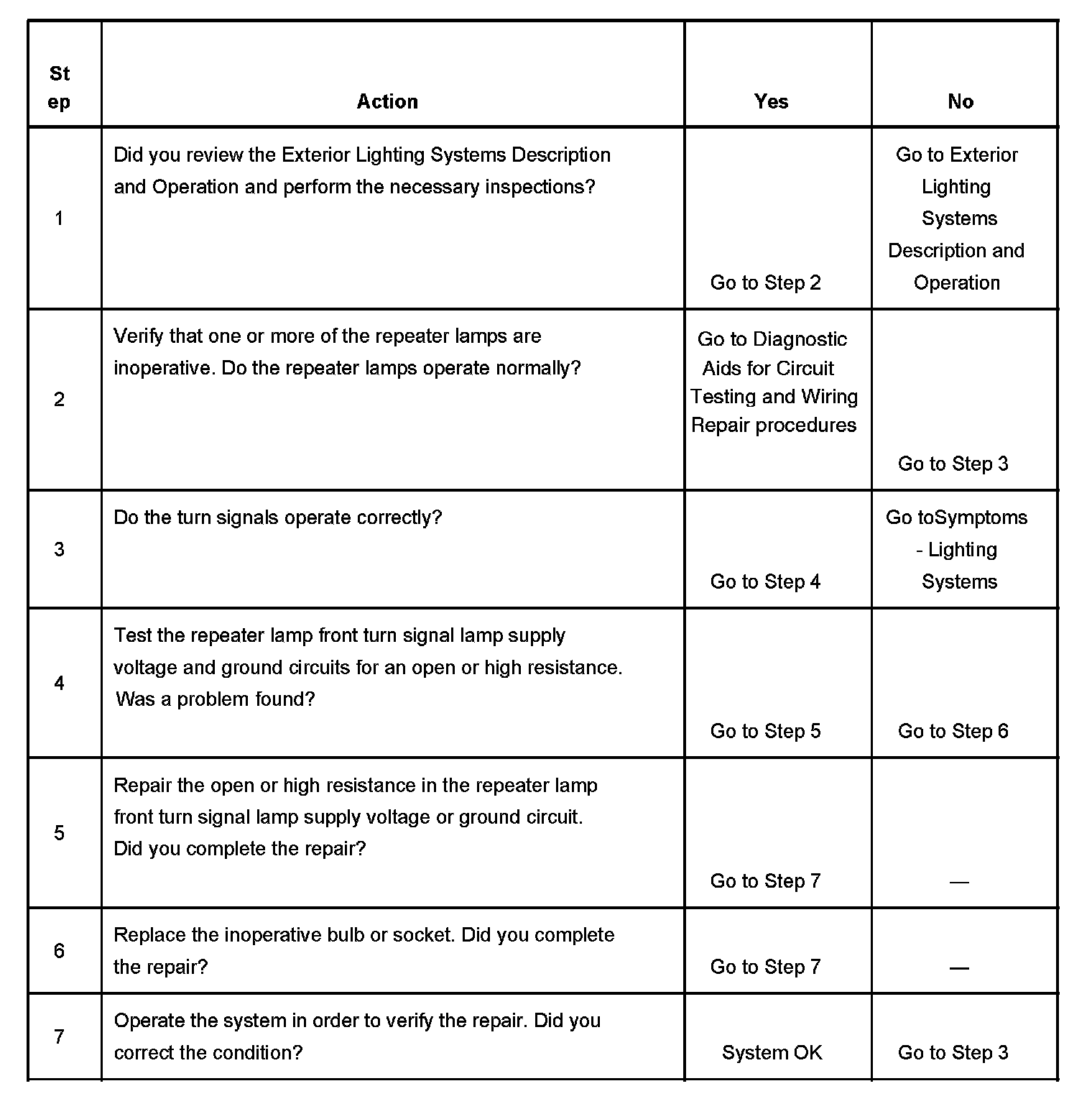 Repeater Lamps Inoperative