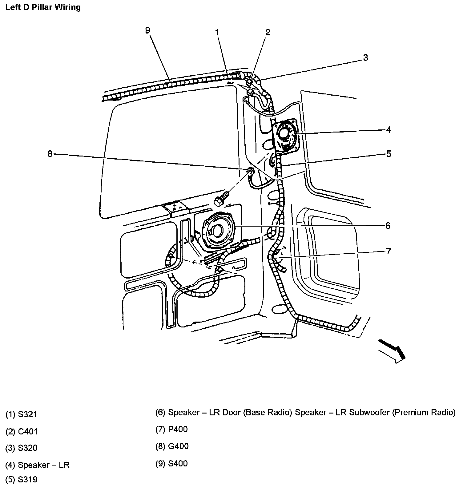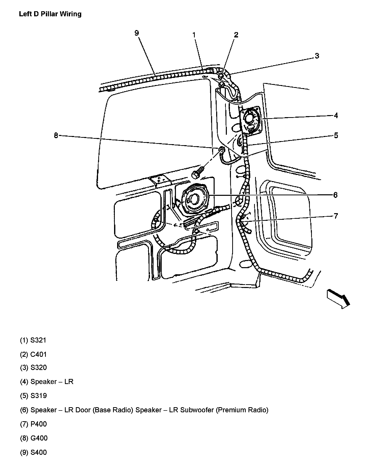 Left D Pillar Wiring:
