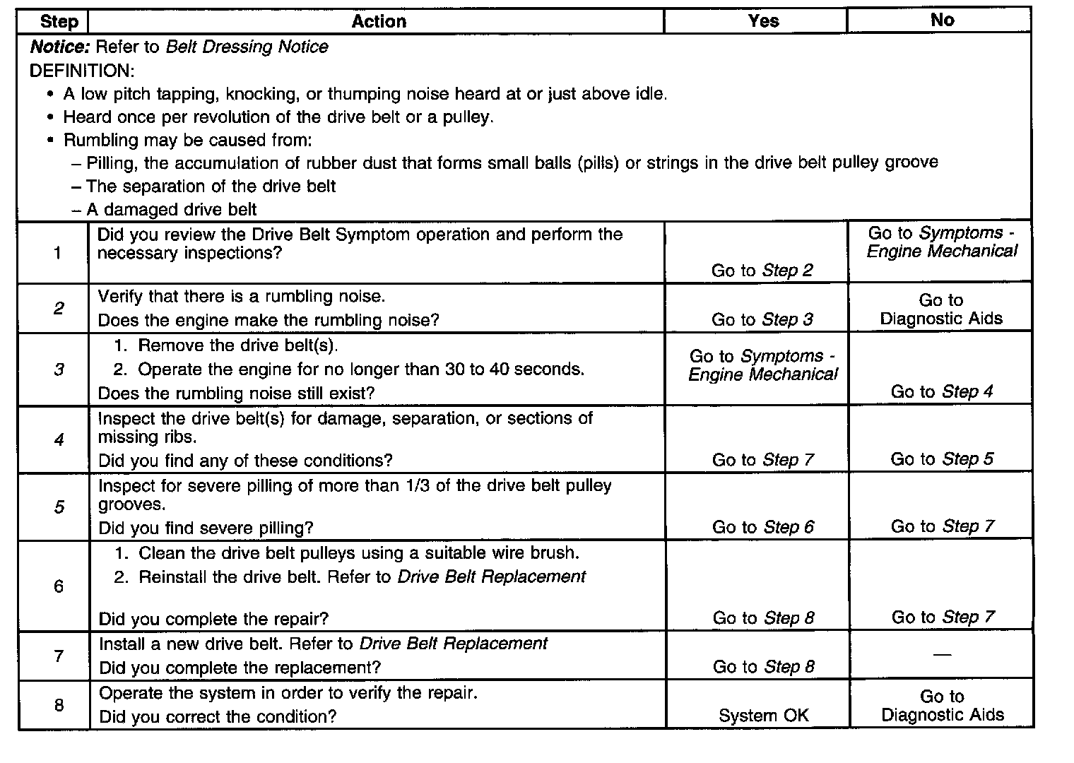 Drive Belt Rumbling DiagnosisSteps 1-8: