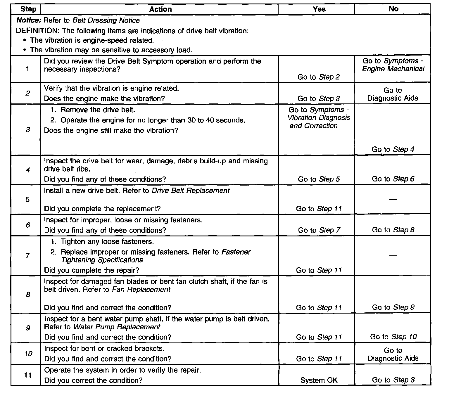 Drive Belt Vibration DiagnosisSteps 1-11: