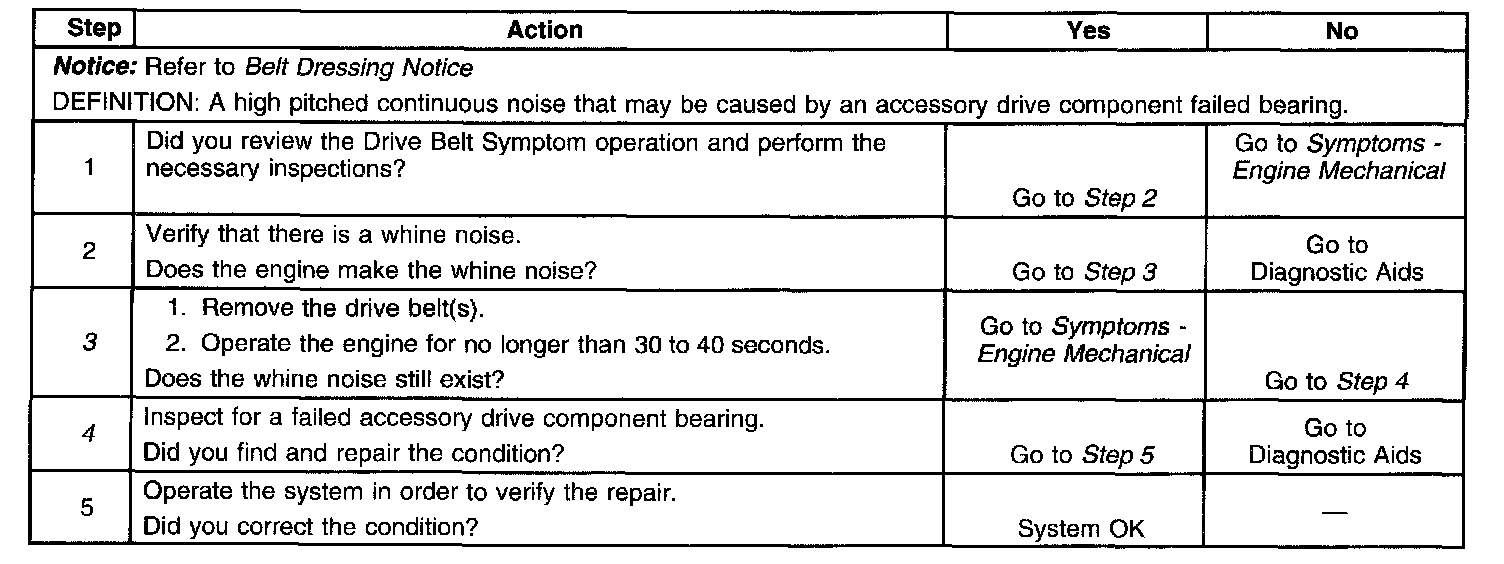 Drive Belt Whine DiagnosisSteps 1-5: