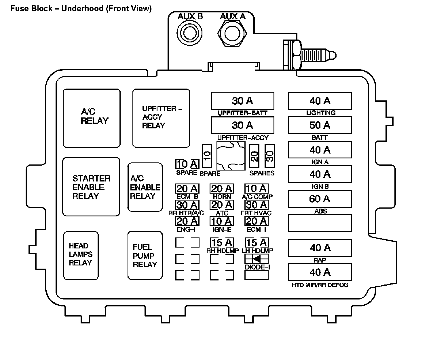 Fuse Block - Underhood (Front View)