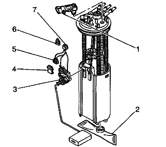 6. Squeeze the locking tangs and remove the fuel level sensor (3).