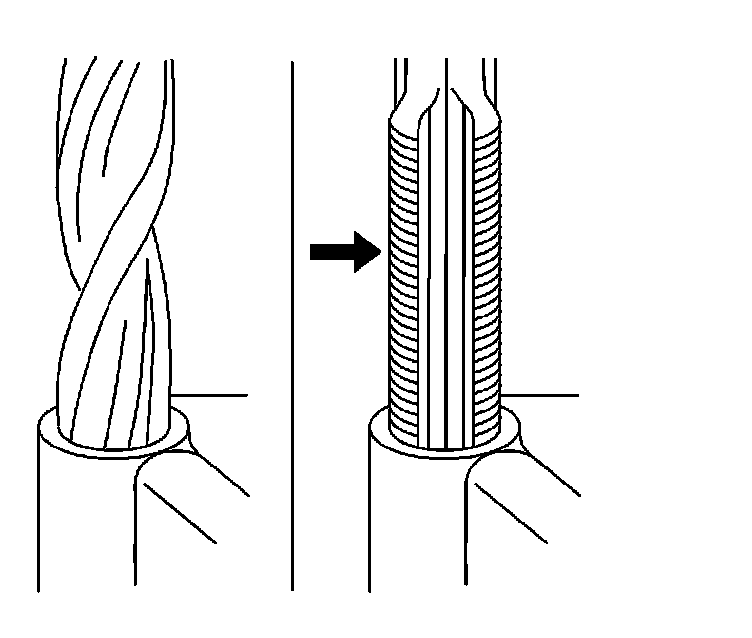 IMPORTANT: Refer to the thread repair kit manufacturer's instructions regarding the size of the drill and tap to use.Avoid any buildup of chips. Back out the tap every few turns and remove the chips.