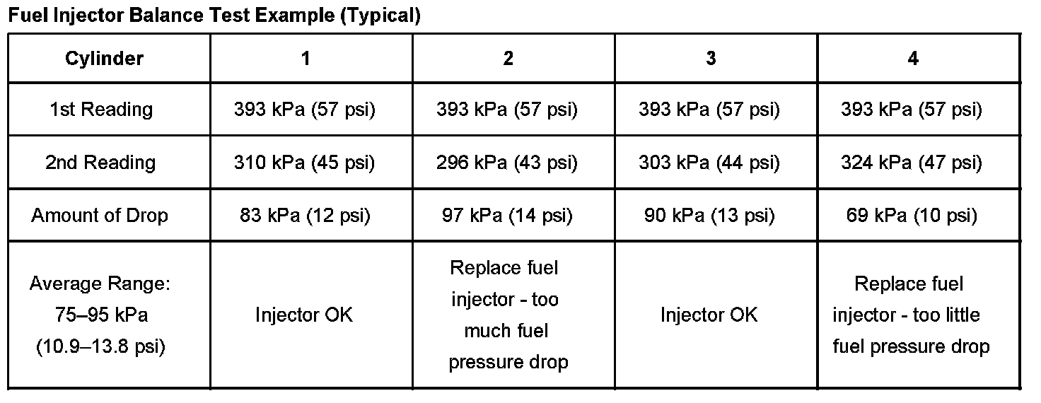 SYSTEM DESCRIPTIONFuel Injector Balance Test Example (Typical):