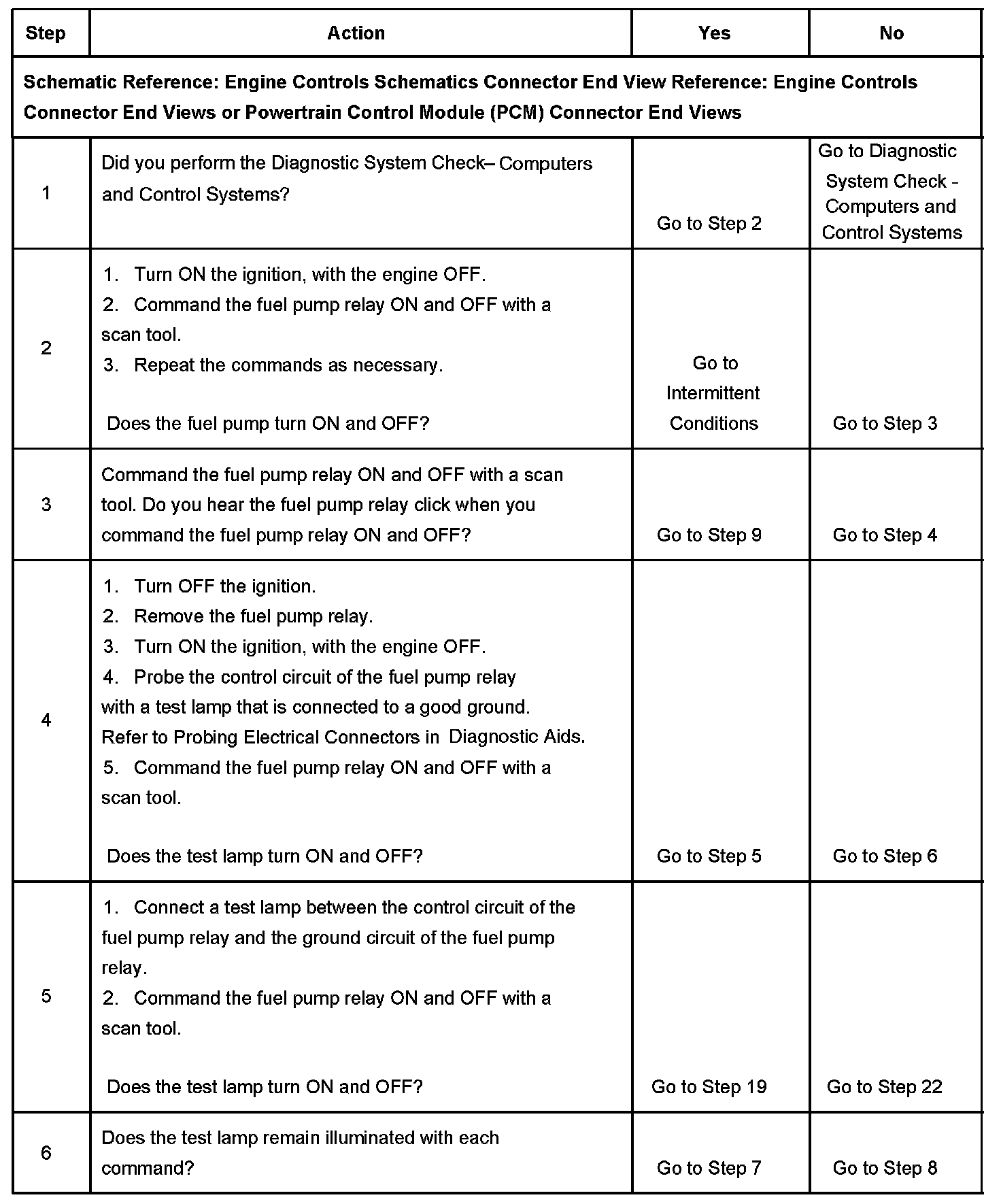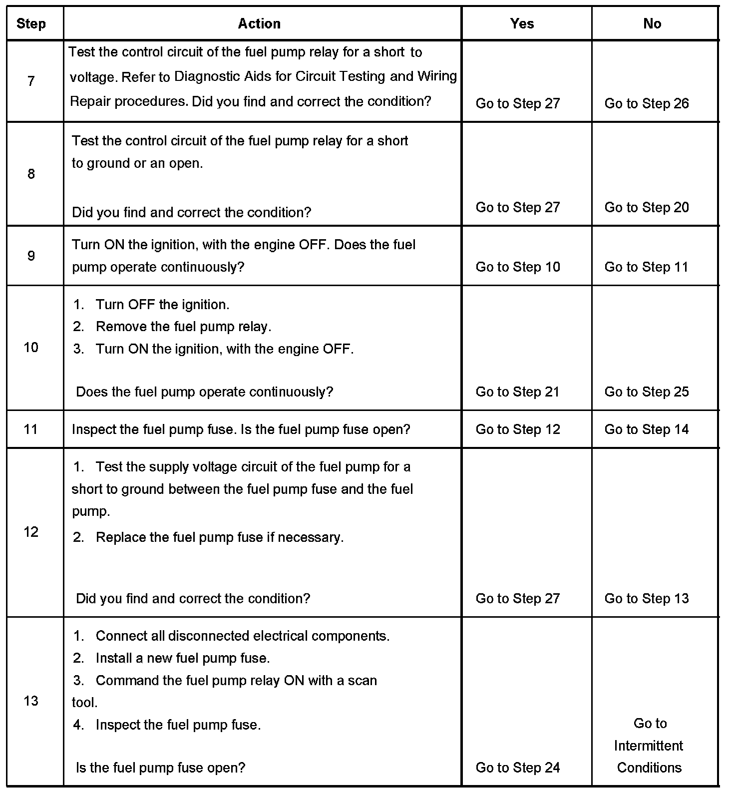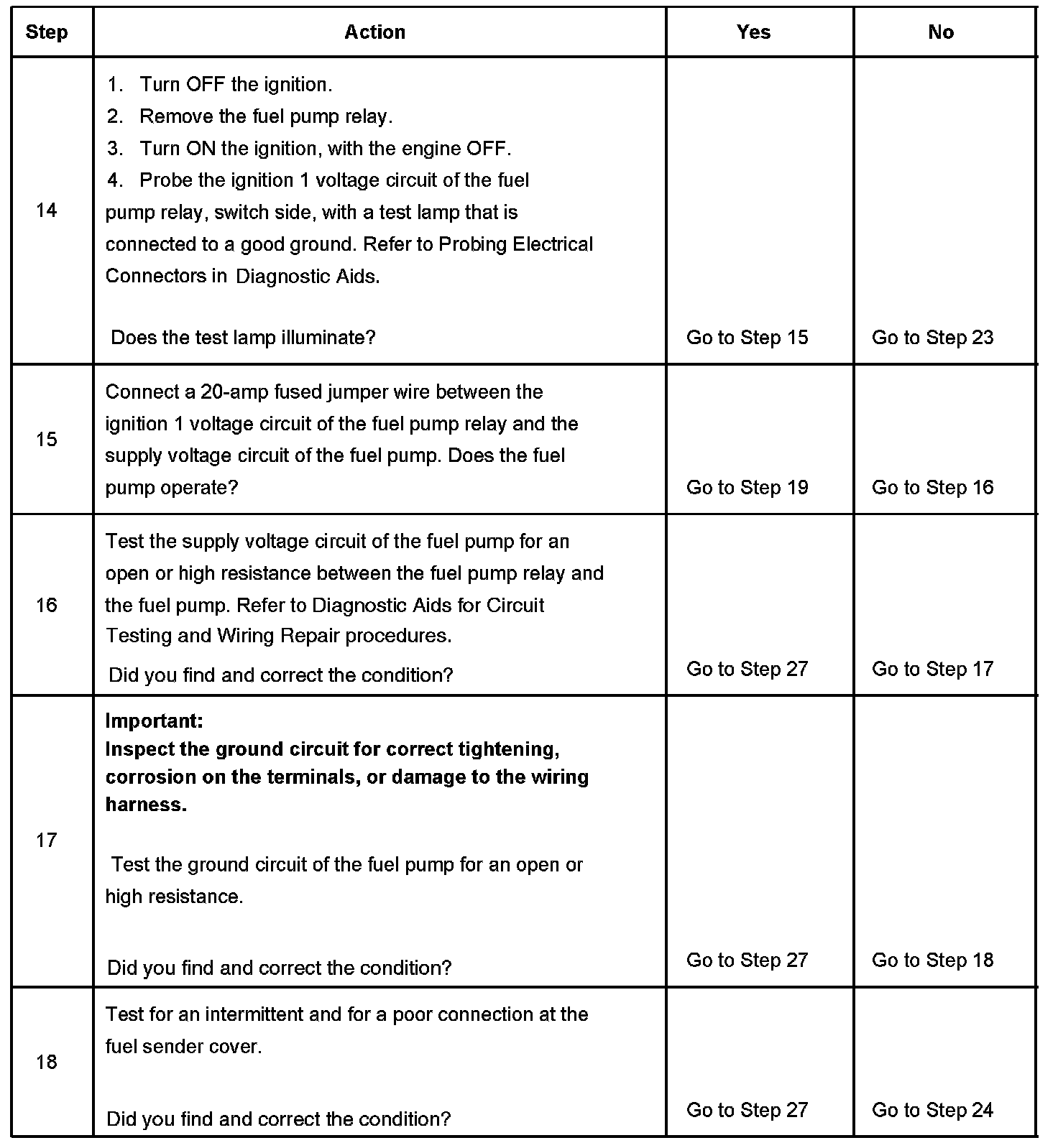 Fuel Pump Electrical Circuit Diagnosis