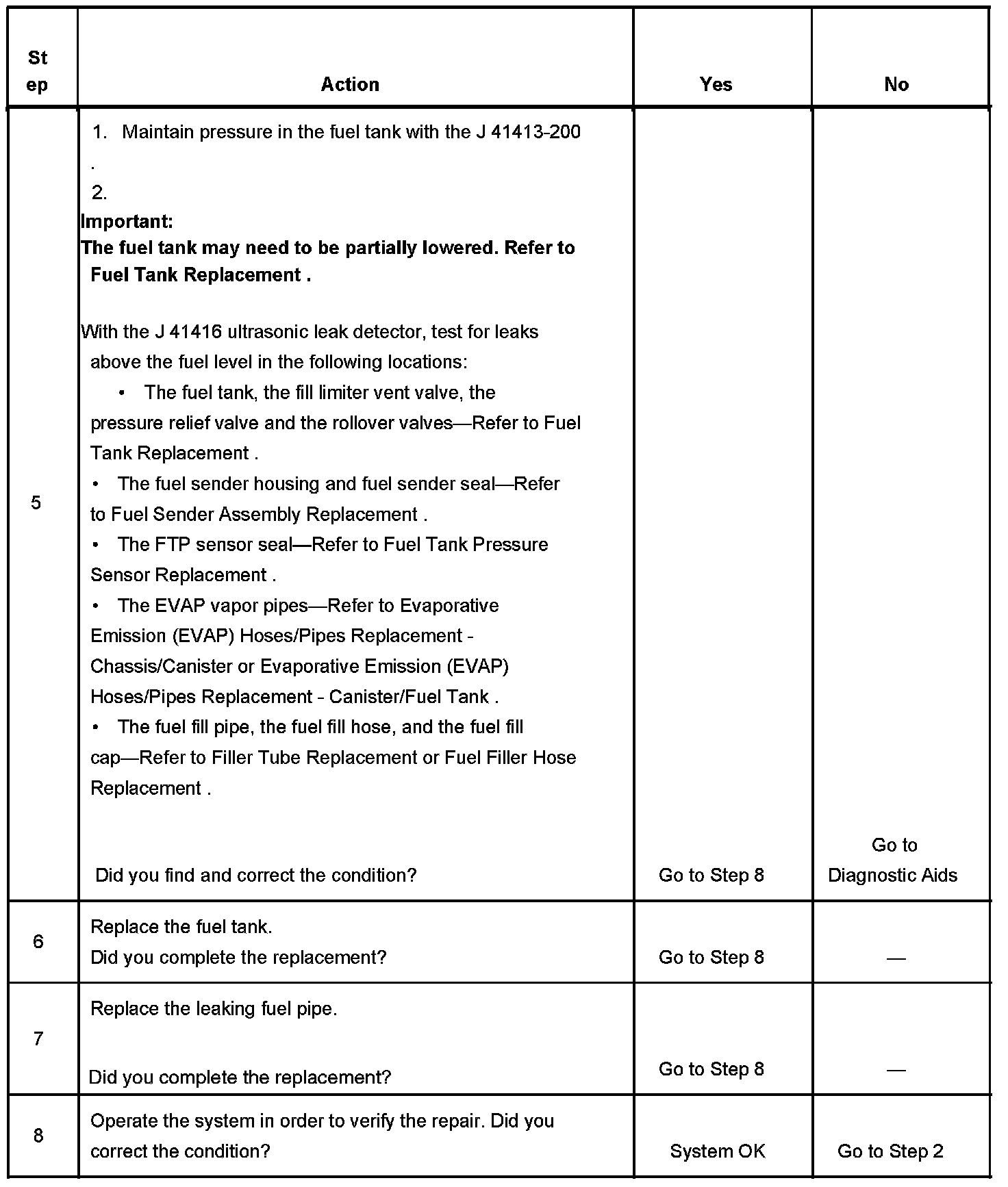 5. This test locates fuel vapors escaping above the fuel level in the fuel tank.