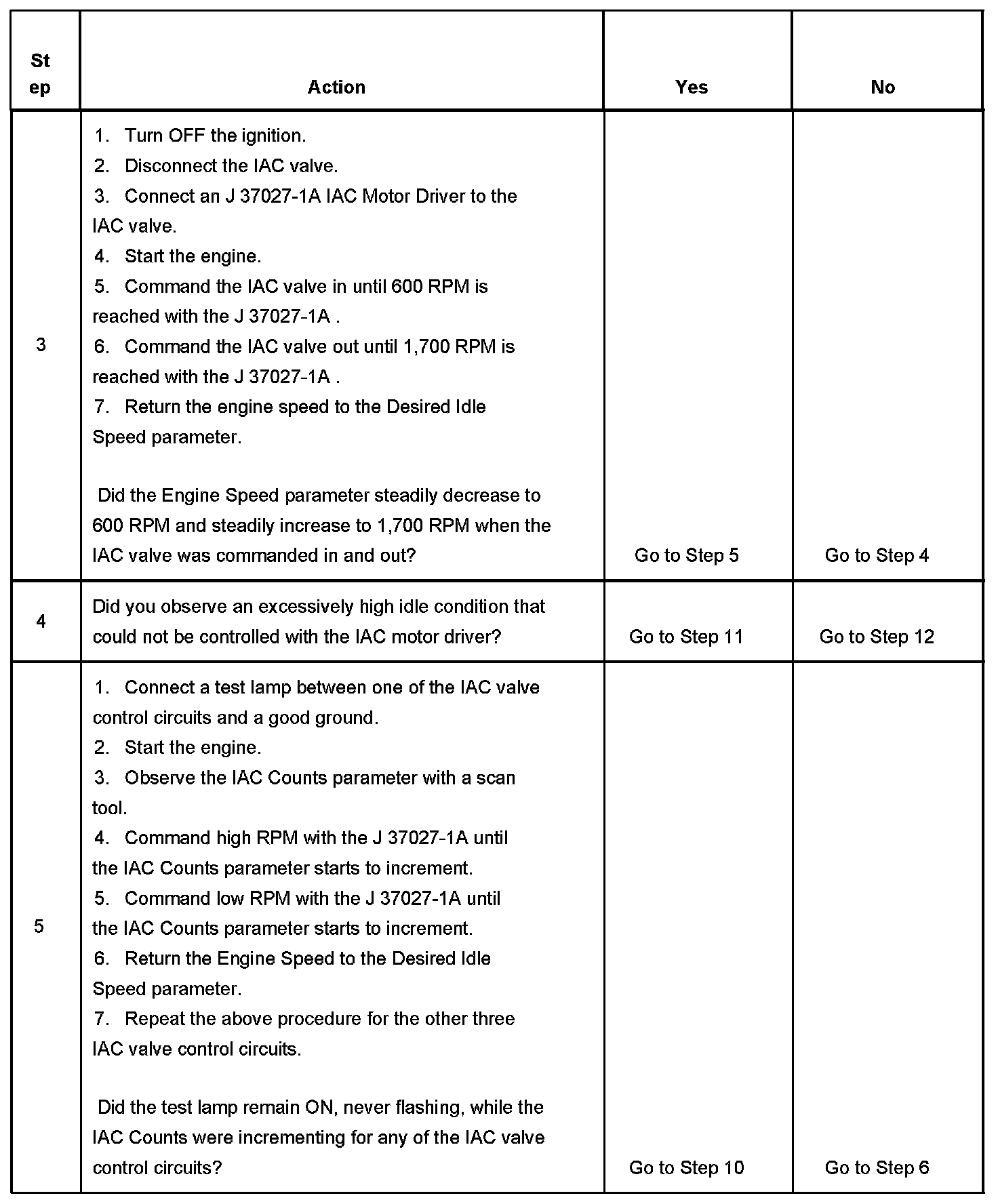 5. This test will determine the ability of the PCM and IAC valve control circuits to control the IAC valve.