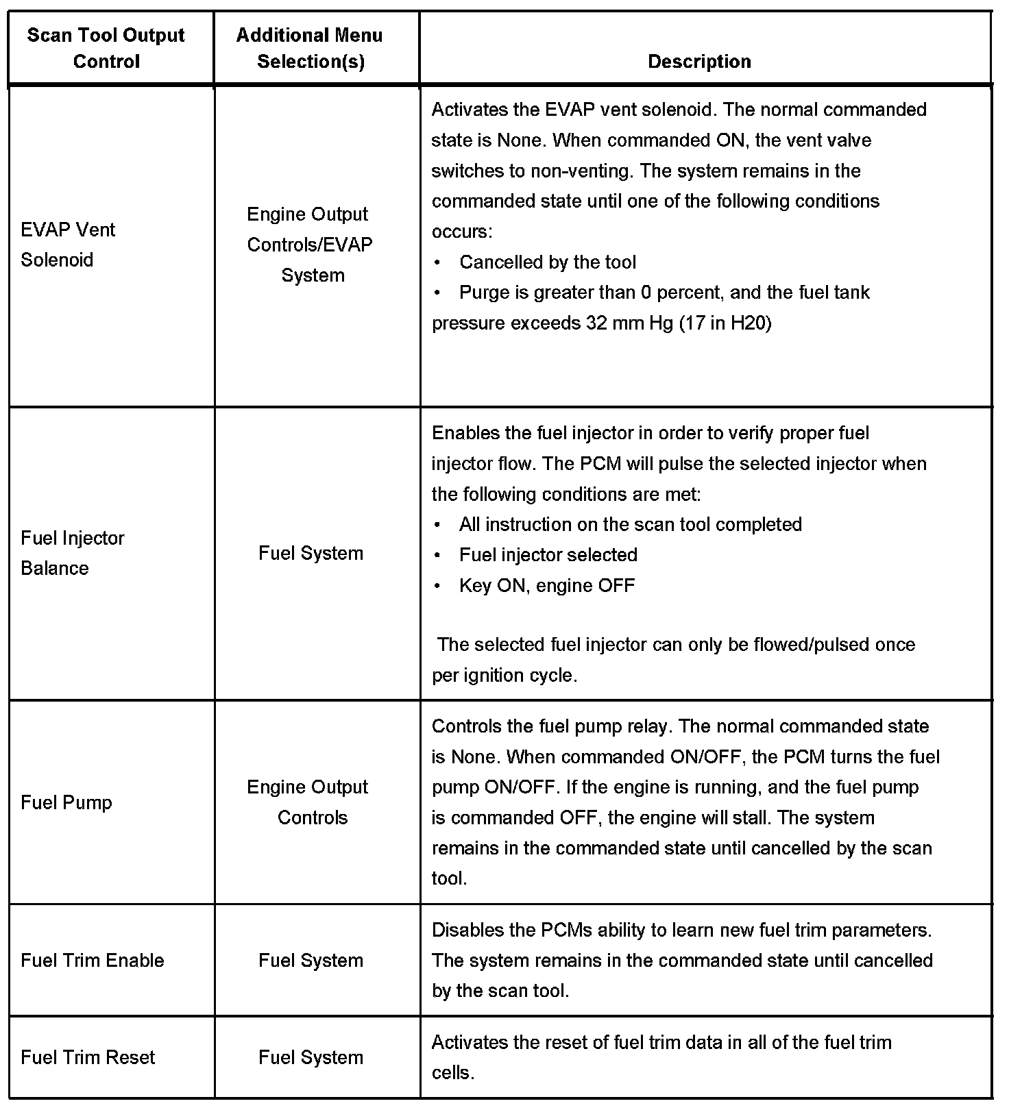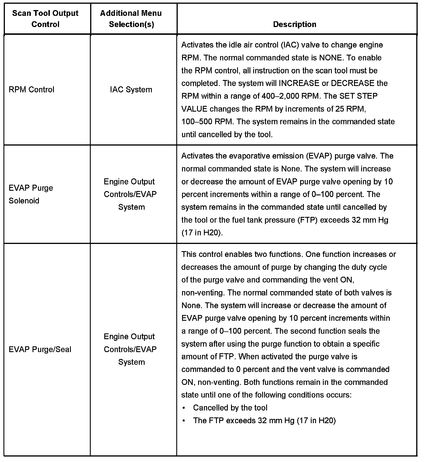 Scan Tool Output Controls