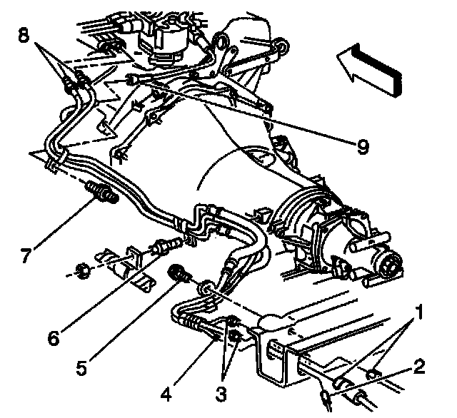 8. Connect the chassis EVAP pipe to the engine compartment EVAP pipe (9).