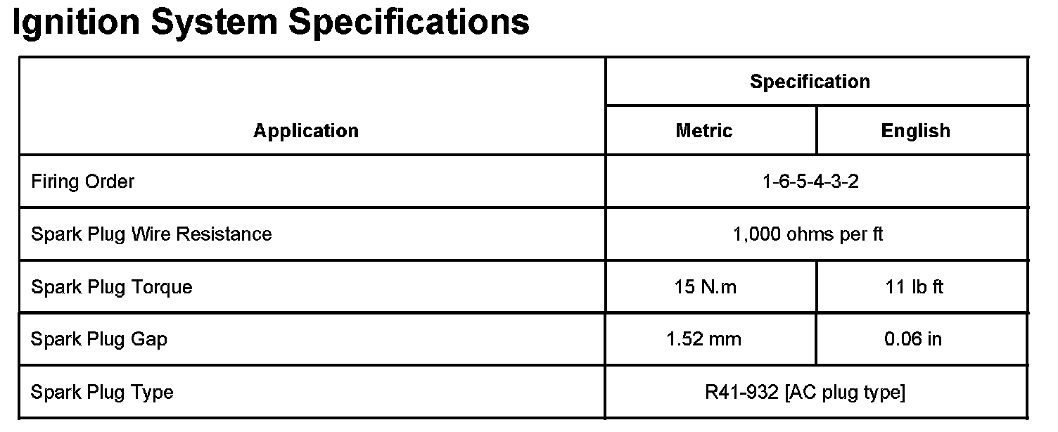 Ignition System Specifications: