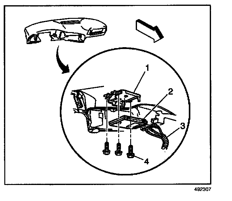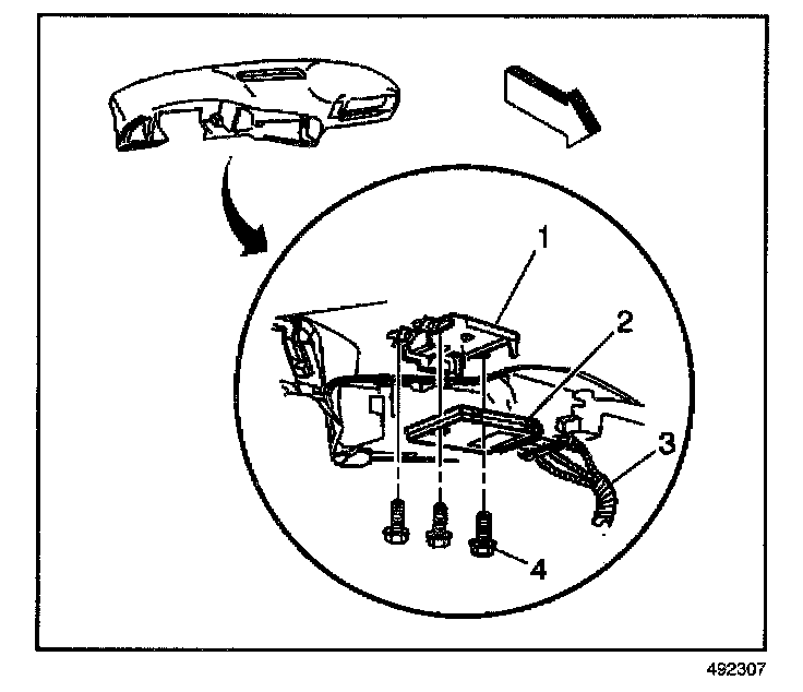 1. Install the body control module (2) to the vehicle.