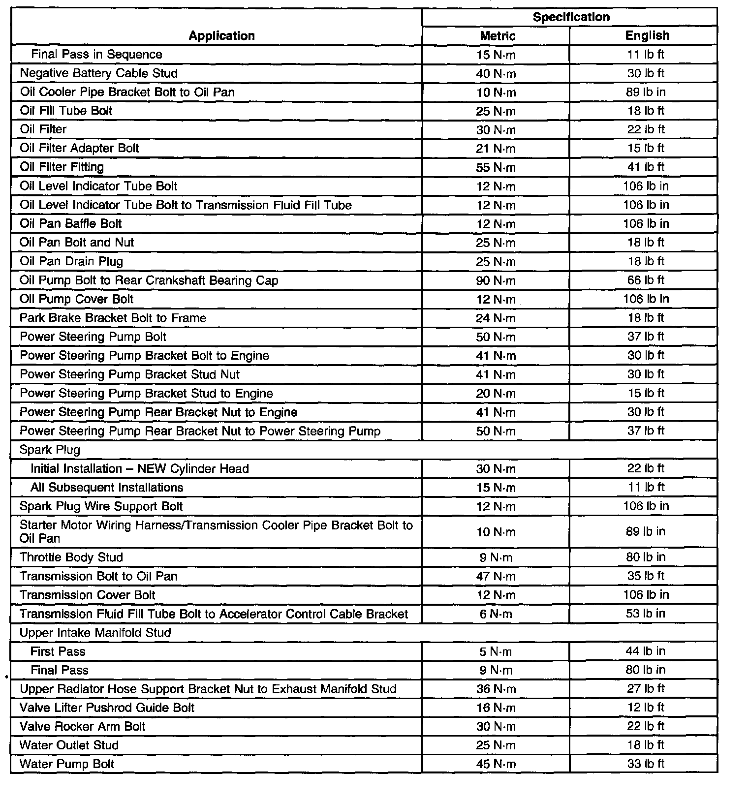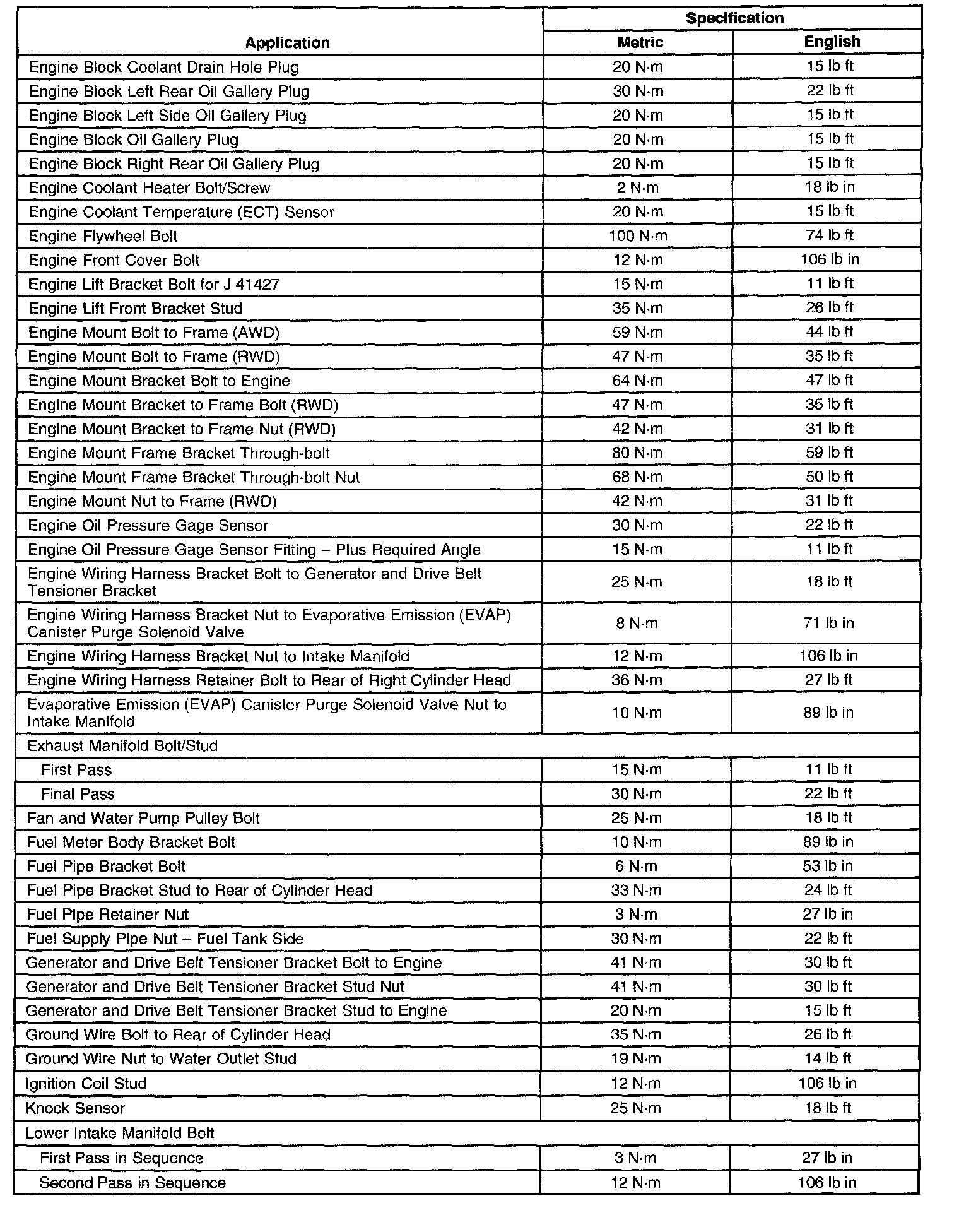 Torque Specification