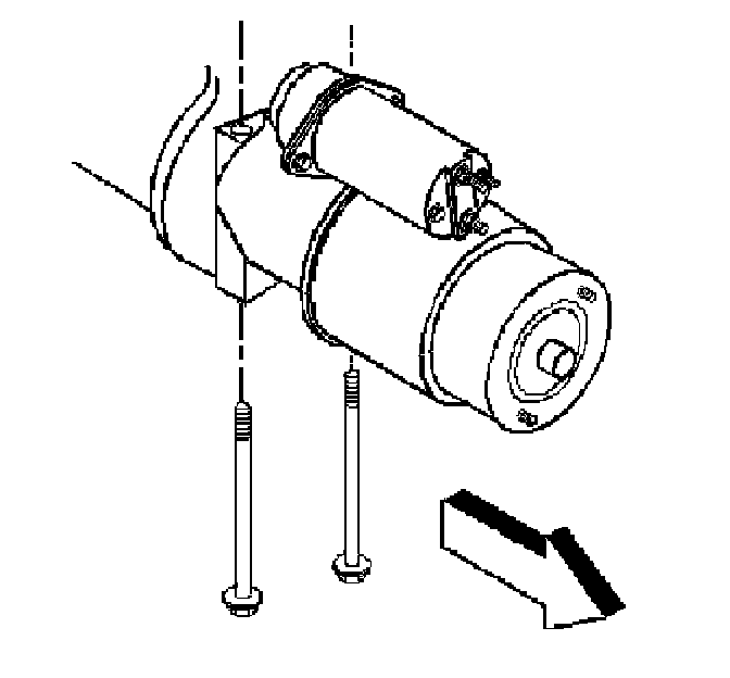 1. Install the two starter motor mounting bolts and the shims (if necessary) through the starter to the engine.