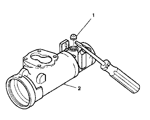 Remove the check valve (1) from the steering gear housing (2) using a small screwdriver.