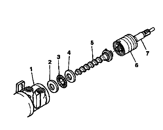 4. Install the stub shaft (7) and valve assembly (6) to the worm shaft (5). Ensure the pin fits in the worm shaft to the slot in the valve assembly.