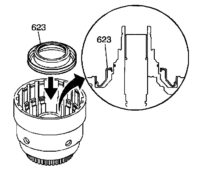 3. Install the 3rd and 4th clutch piston (623) into the input housing.
