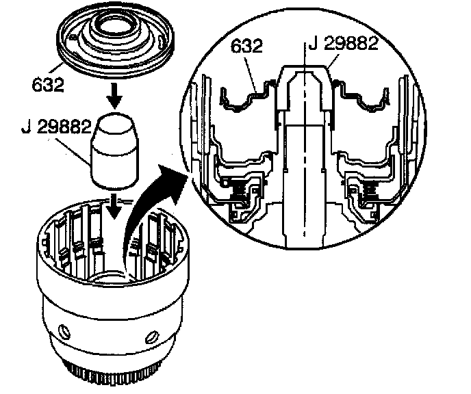 14. Install the overrun clutch piston (632) into the input housing.