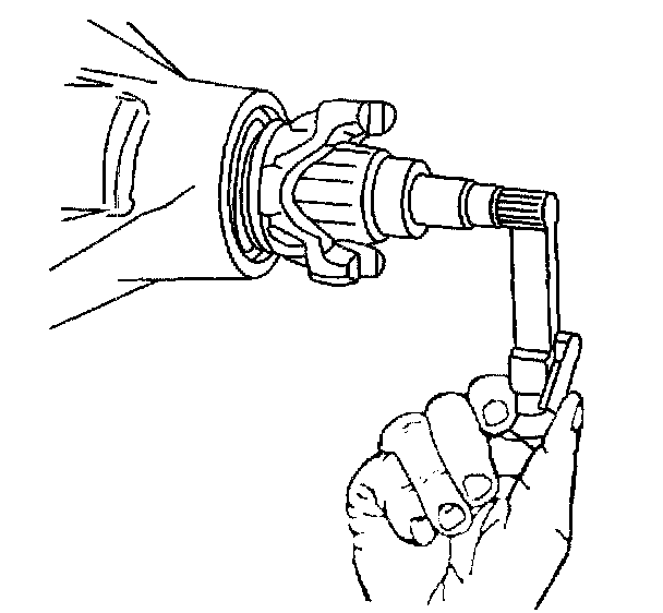 Notice: When removing the propeller shaft, do not attempt to remove the shaft by pounding on the yoke ears or using a tool between the yoke and the universal joint. If the propeller shaft is removed by using such means, the injection joints may fracture and lead to premature failure of the joint.