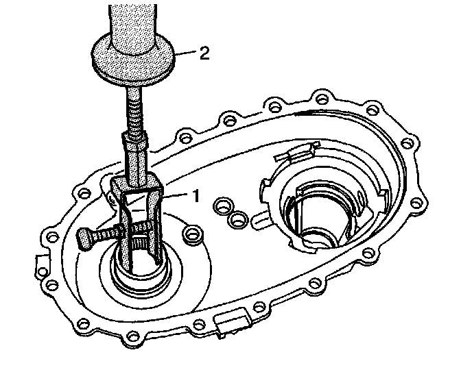 72. If the bearing is faulty, remove the bearing using the J23907 (2) and the J26941 (1).