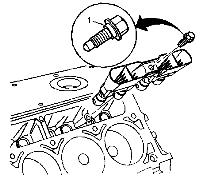 4. Install the valve lifter guide bolt (1).