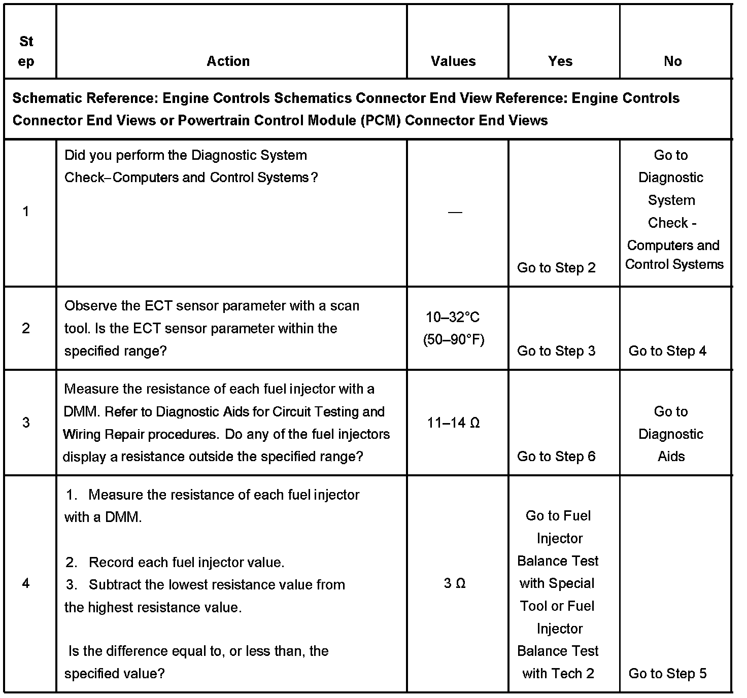 - If the fuel injector coil test does not isolate the condition perform the fuel injector balance test. Refer to Fuel Injector Balance Test with Special Tool or Fuel Injector Balance Test with Tech 2. Component Tests and General Diagnostics Component Tests and General Diagnostics