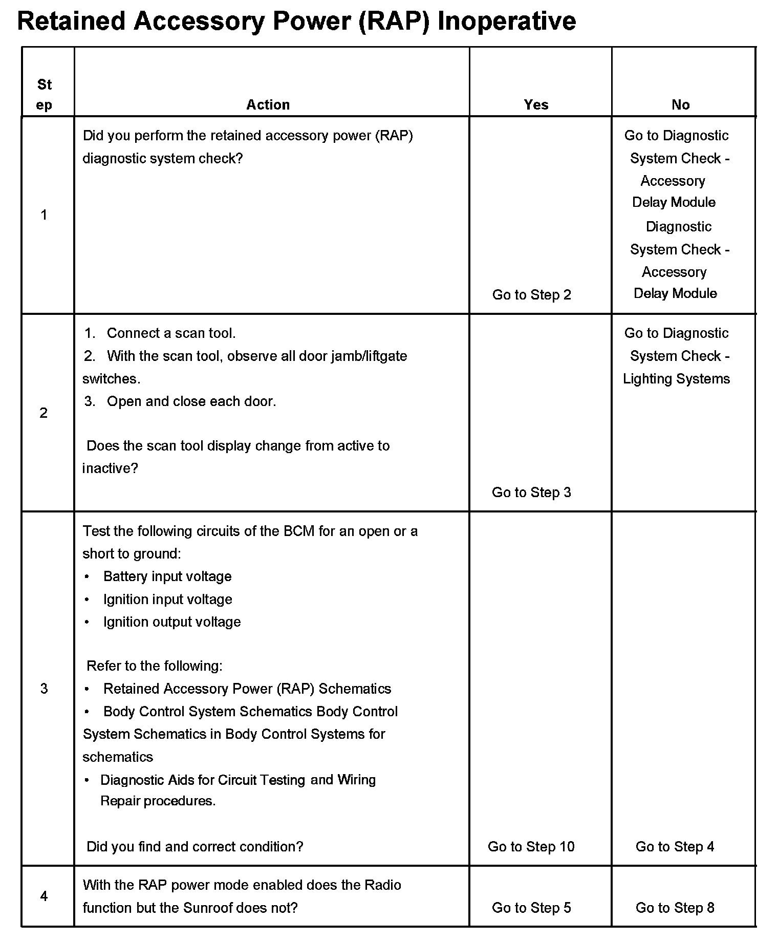 Retained Accessory Power (RAP) - Inoperative