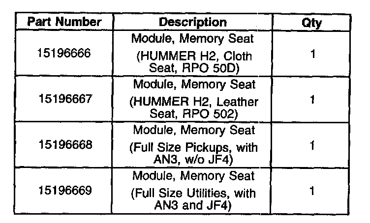 This repair is not to be performed on vehicles without memory/heated seats. If the vehicle does not have memory/heated seats but has an inoperative power seat, use published Service Information to diagnose the concern.
