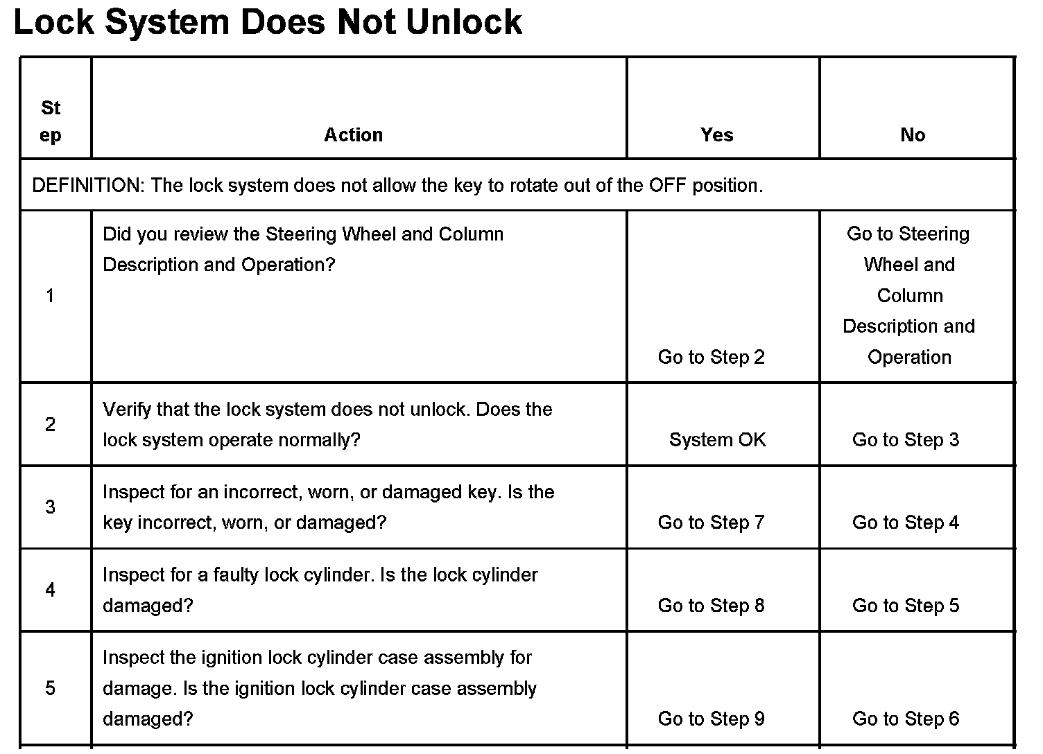 Lock System Does Not Unlock