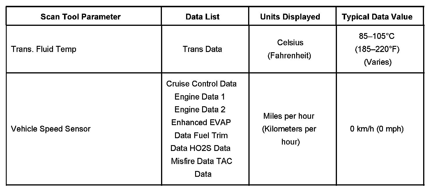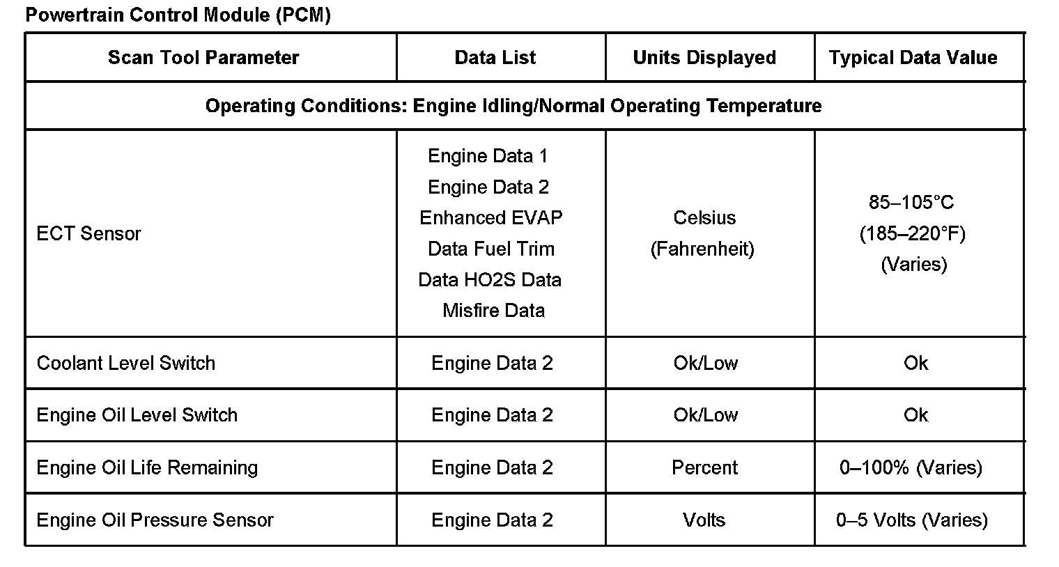 Scan Tool Data List - Powertrain Control Module (PCM)