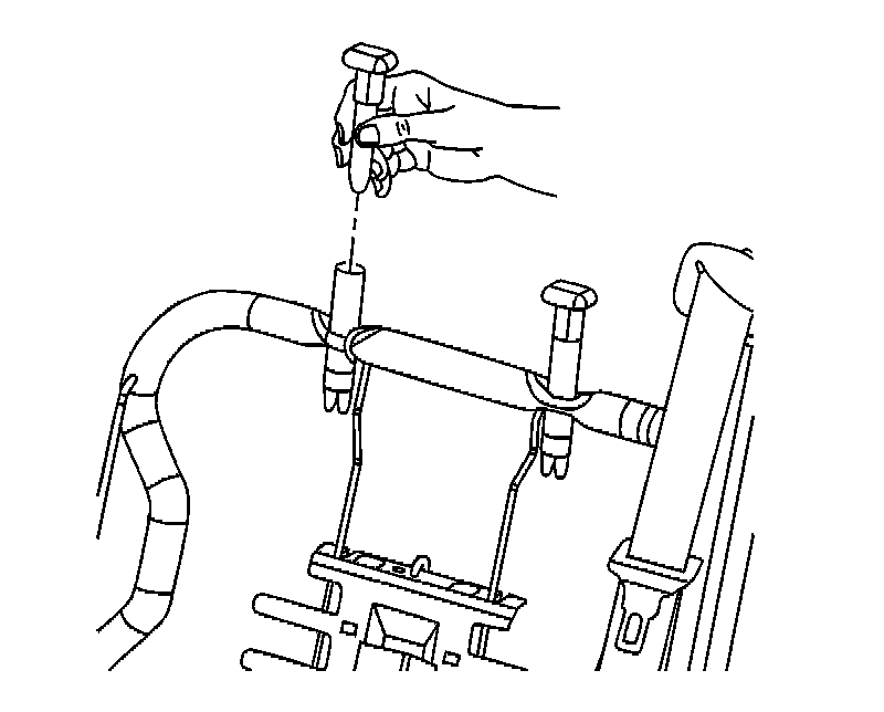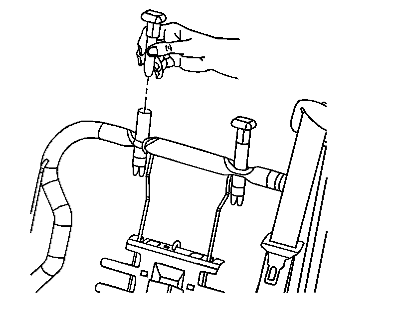 1. Install the head restraint retainers by pressing into the seat back frame until the retaining tabs snap into place at the bottom of the frame opening.