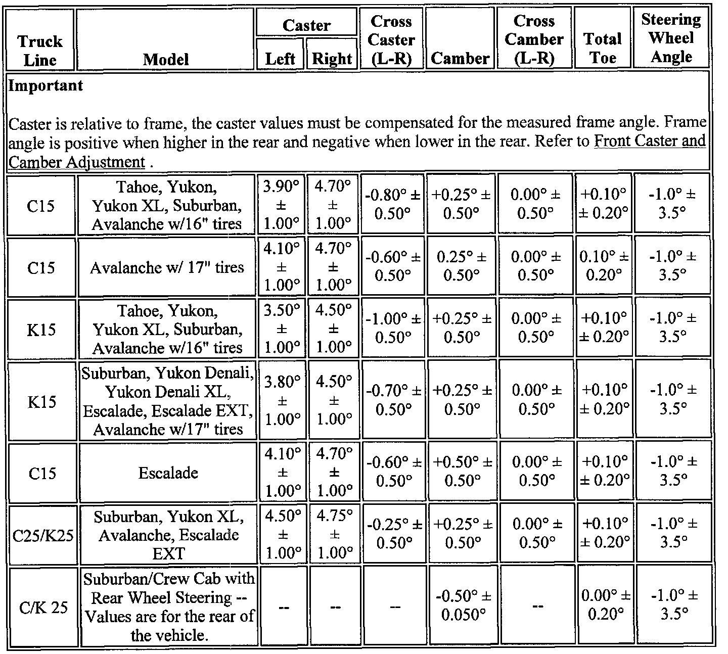 Wheel Alignment Specifications