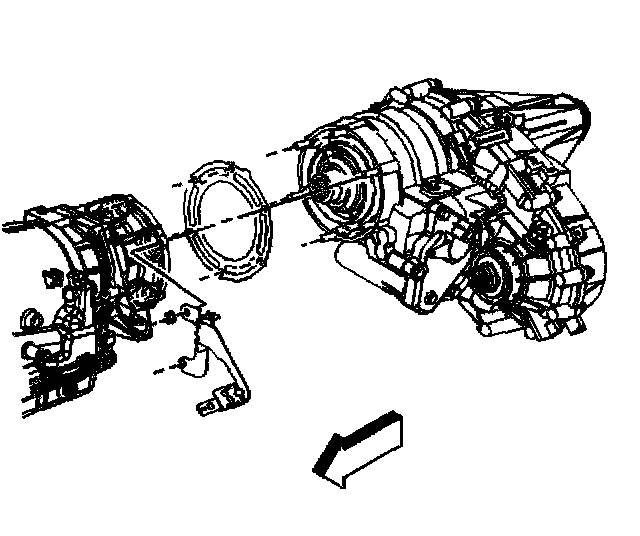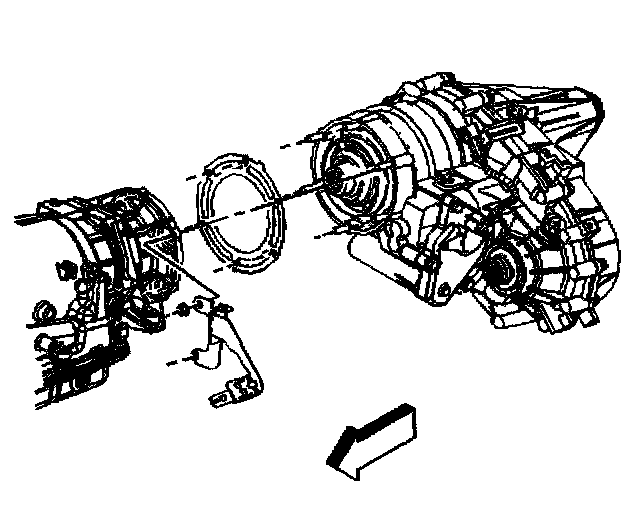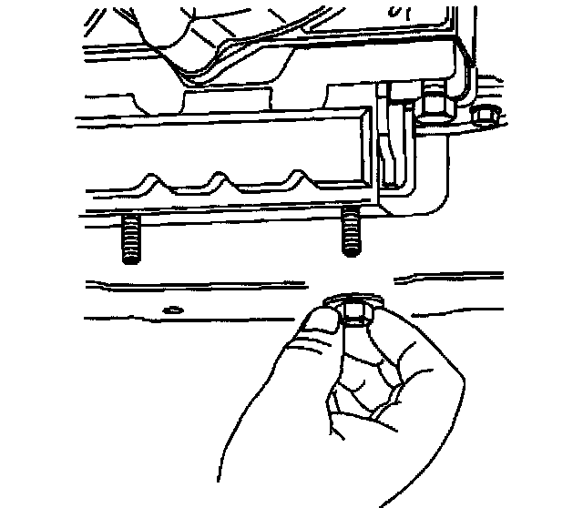 Important: Ensure that the gasket is flush to the transmission prior to installing the nuts.