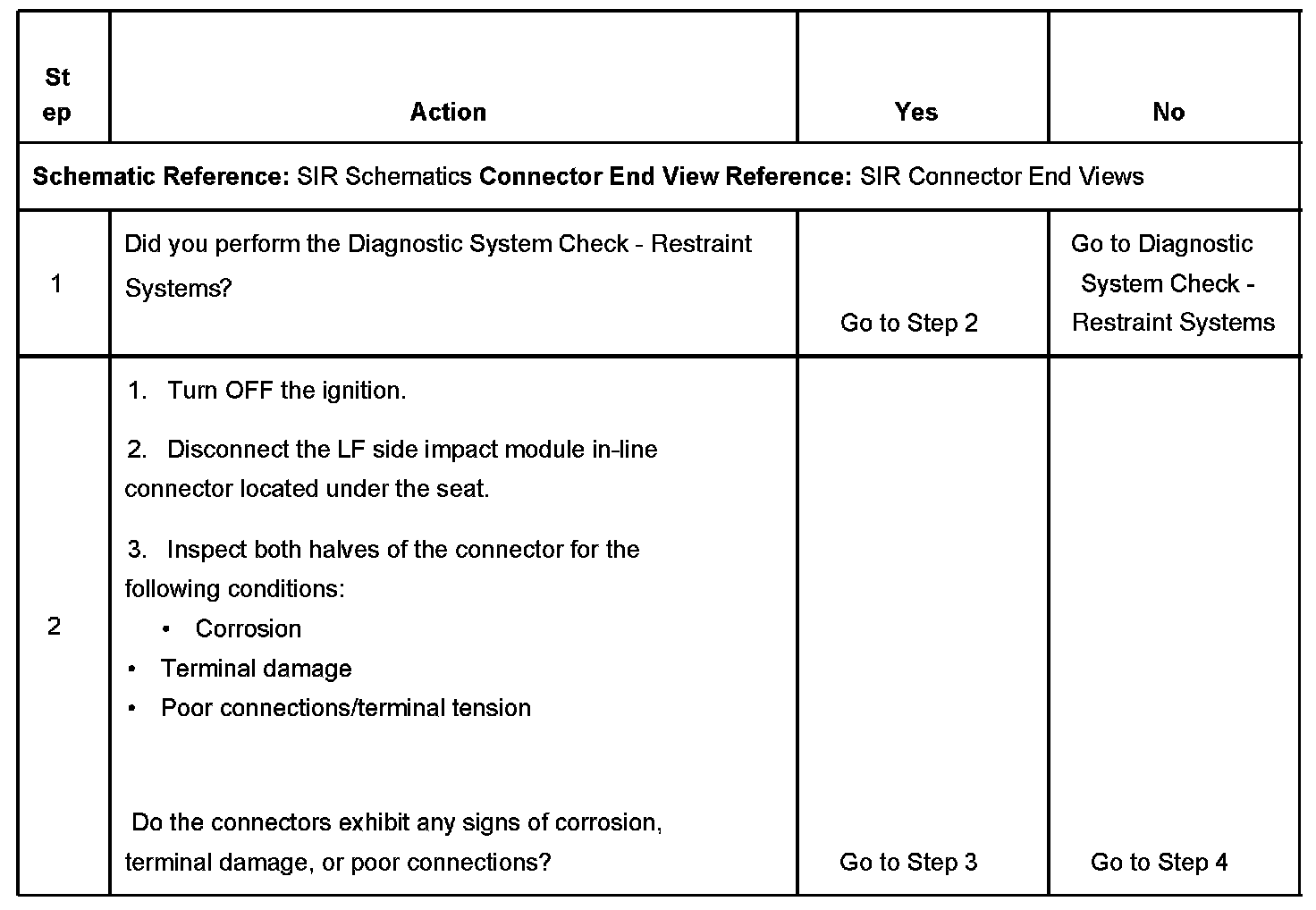 - An open or high resistance in the LF side impact module high or LF side impact module low control circuits